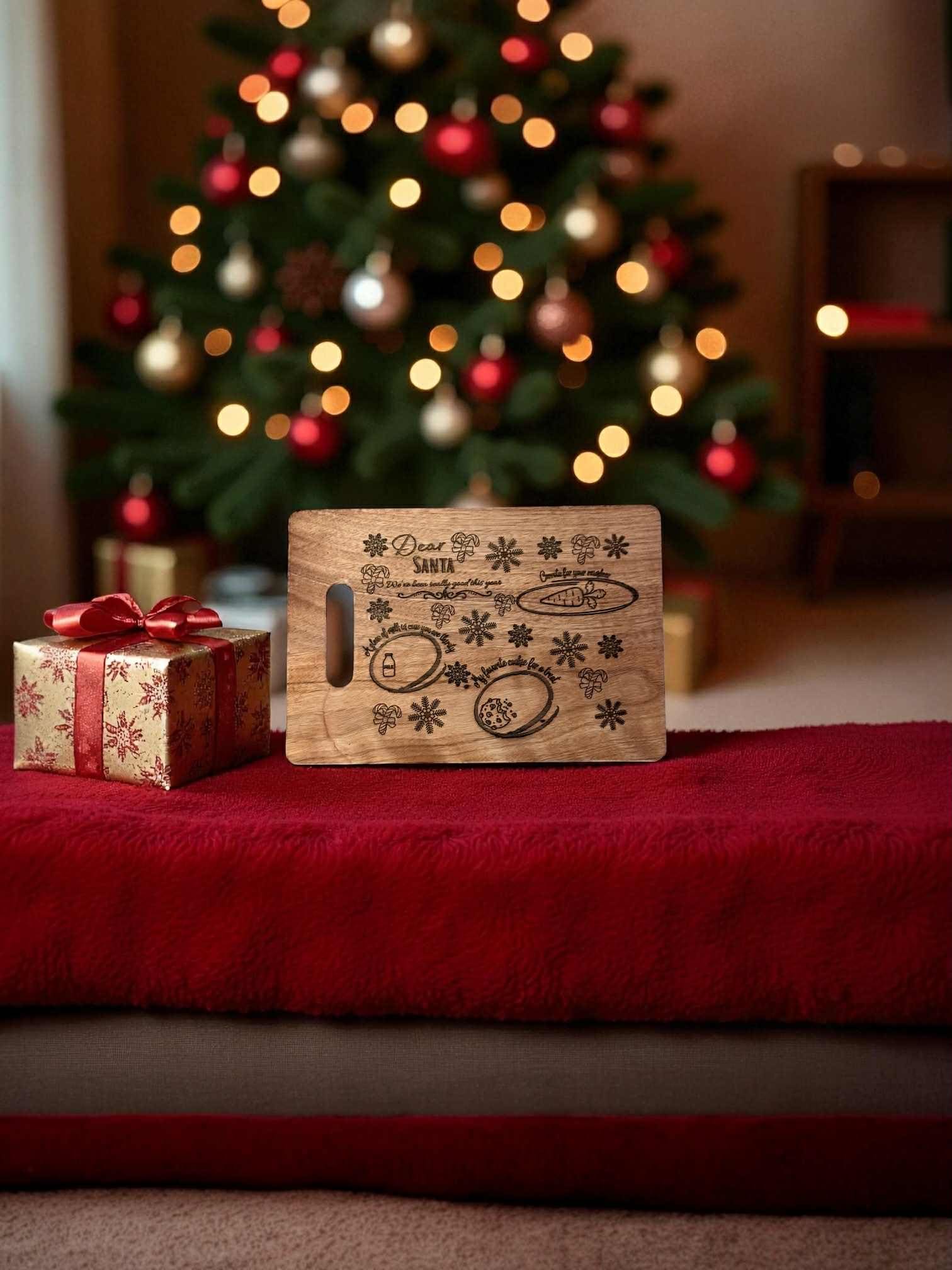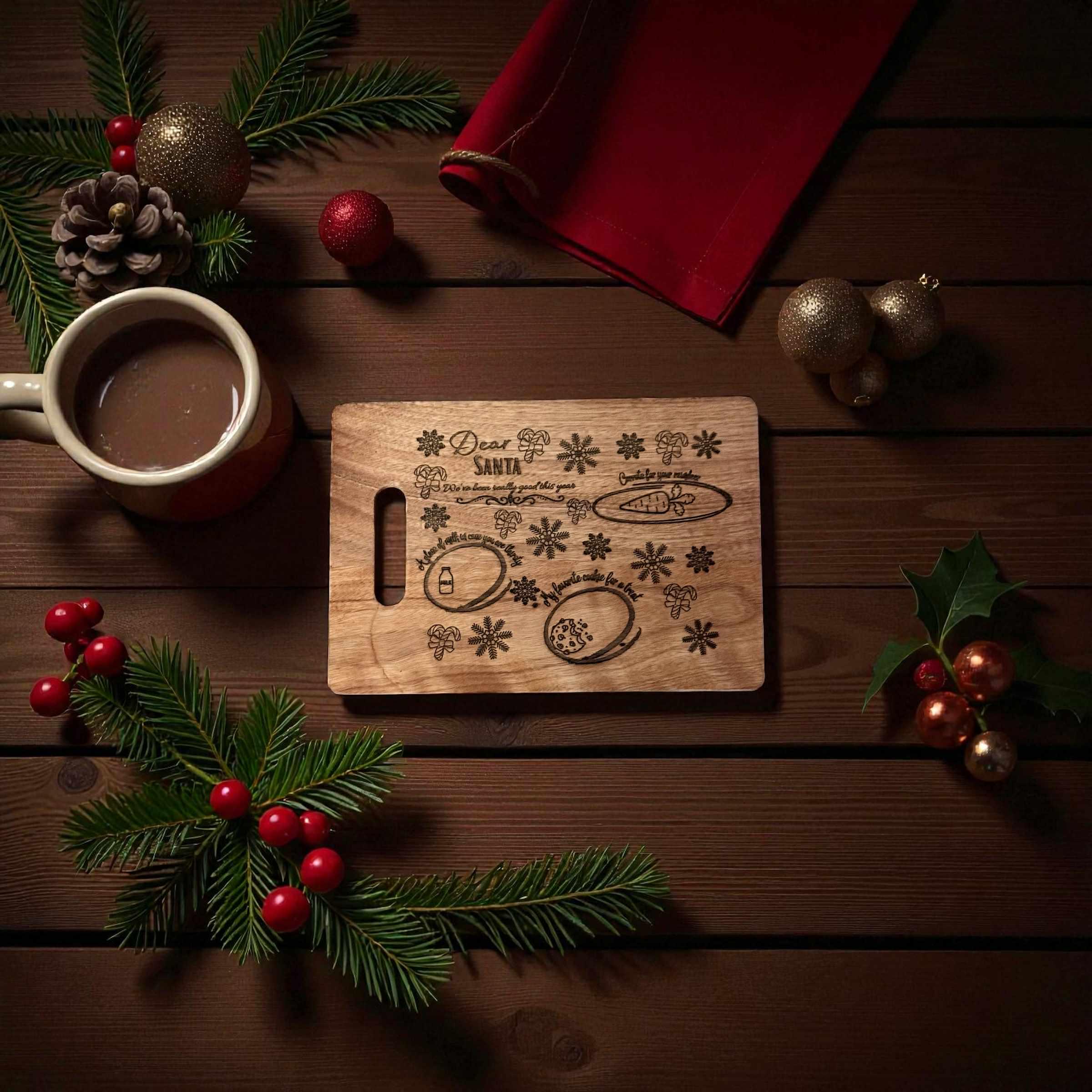 Make Christmas Eve extra magical with this beautifully engraved wooden Santa treat board! Designed to hold Santa’s milk, a favorite cookie, and a carrot for the reindeer, this reusable holiday board becomes a cherished family tradition year after year.