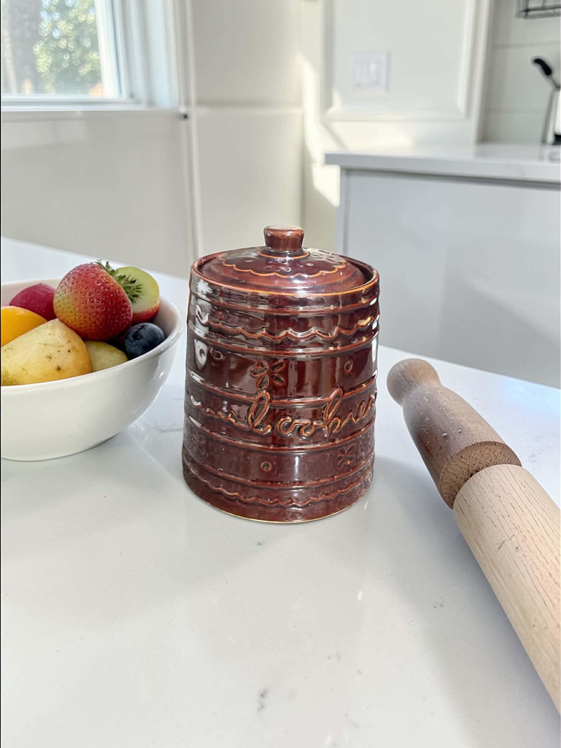 Bring timeless vintage charm into your kitchen with this beautiful Marcrest Daisy Dot cookie jar 🤎🏺