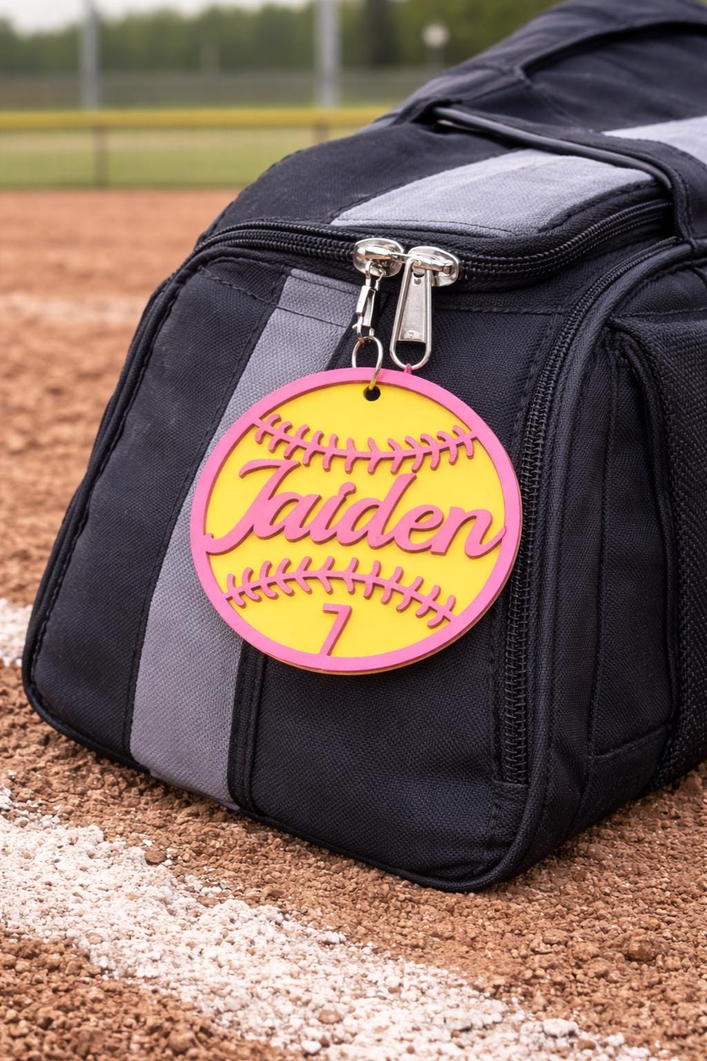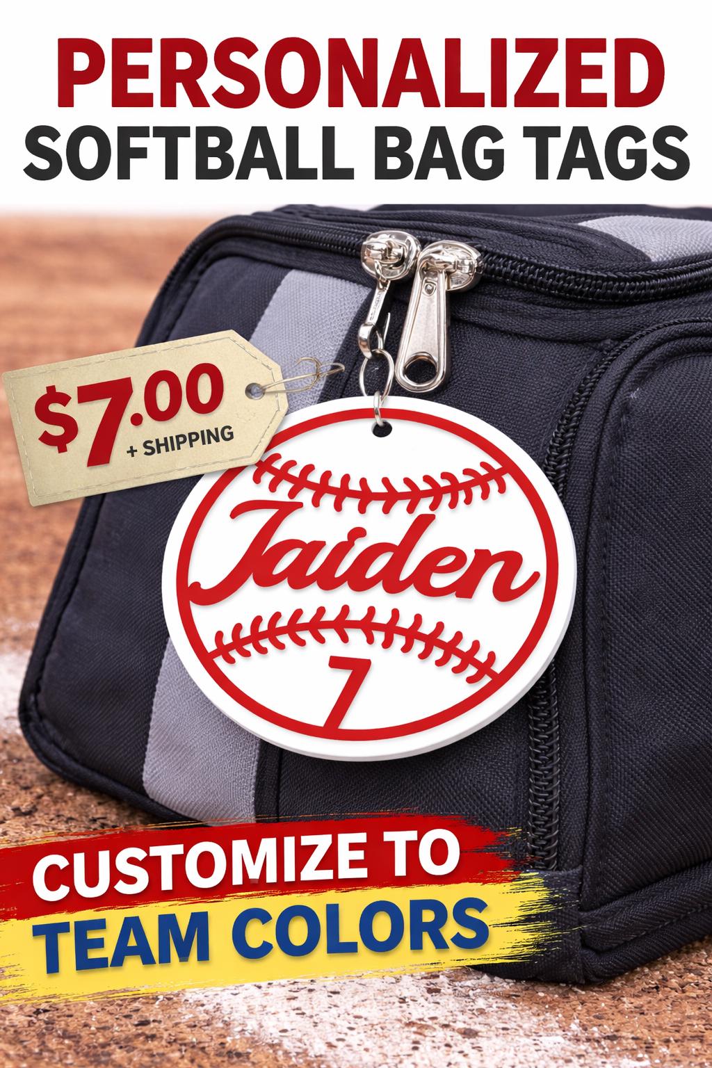 Each tag is made to stand out on a softball bat bag, backpack, or equipment bag and makes it easy to spot your gear fast.