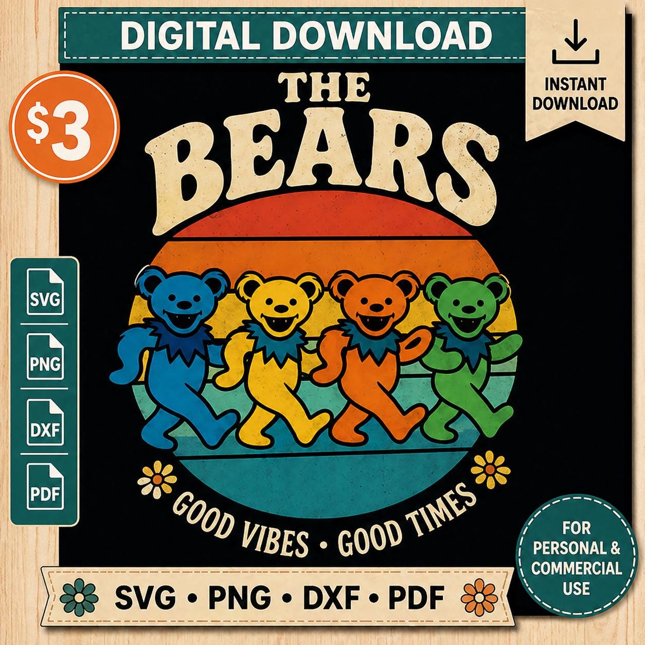 Retro grateful dead dancing bears SVG PNG | vintage bear shirt design | grateful inspired bears graphic